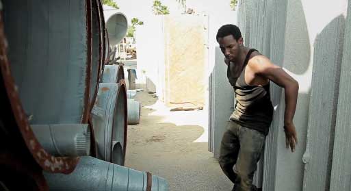 O lance da cena, eu achei fortemente dependente da interpretação. Eu vi este filme e aquela cena como uma piada cínica. Veja, do nada o negro vira um Jedi com uma espada que ele achou no chão? É óbvio que é uma zoada que o diretor quis dar nas lutas espetaculosas dos jedis. Logo, o que parece inverossímil e mal feito, eu interpreto como uma zoada no George Lucas.