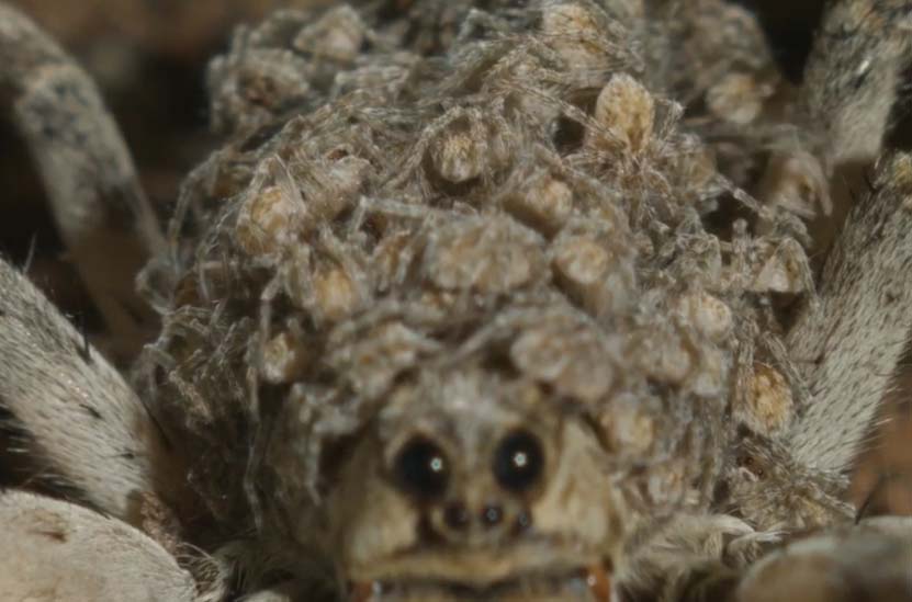 Veja que coisa mais tchutchuca… Uma aranha cheia de aranhazinhas em cima.