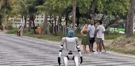 Robô levando cão-robô pra passear intriga moradores de Niterói