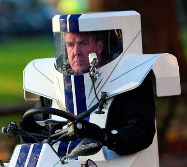 A roupa-carro é uma engenhoca bizarra com um capacete que parece estar ligado ao corpo do carro. Jeremy parecia positivamente futurista com o style e filmou uma cena para a última série de seu popular programa da BBC : Top Gear 2.